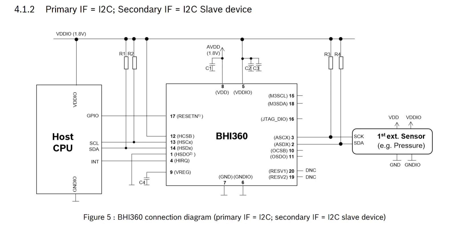 we have a custom board including a BHI360 + BMM350 conntected to a MCU over I2C. (A BMP581 pressure sensor is connected independently to the same host I2C bus).