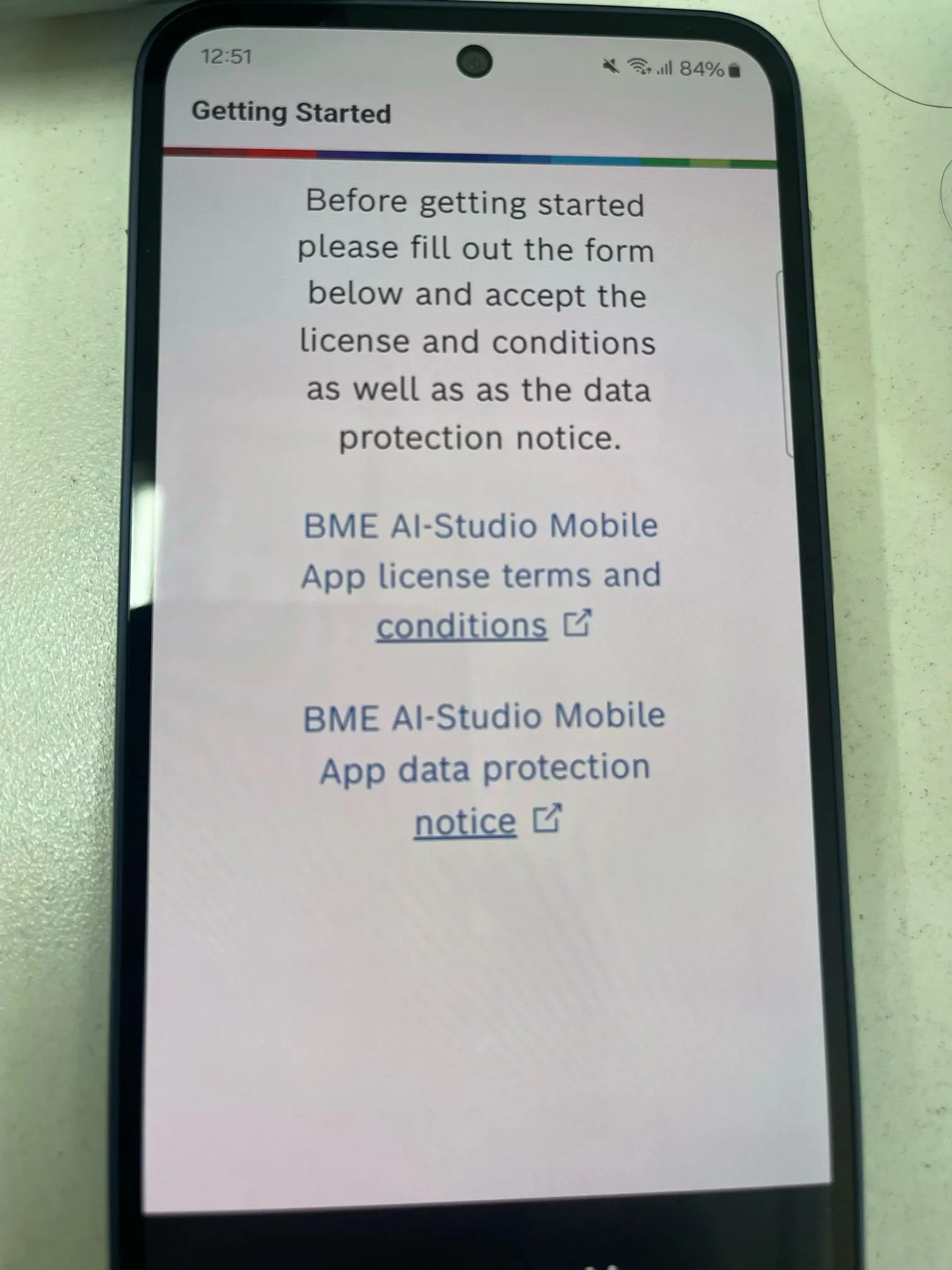 I'm using BME688 dev kit and I want to see real-time data from Android Application. But when I downloaded "BME AI Studio" on CH Play, the application doesn't show any things. I'm stuck at "Getting Start" Page without any buttons. Could you help me to get a demo with BME688 dev kit ?