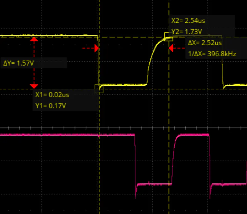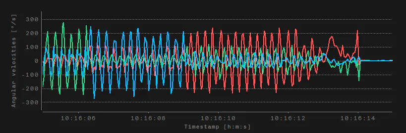 Tools: SDS2504X oscilloscope for timing verification; turntable with 45° steps at 50°/s peak velocity for validation or in the case of the image below I was just turning the bmi on the same axis with my hand until I saw the problem.