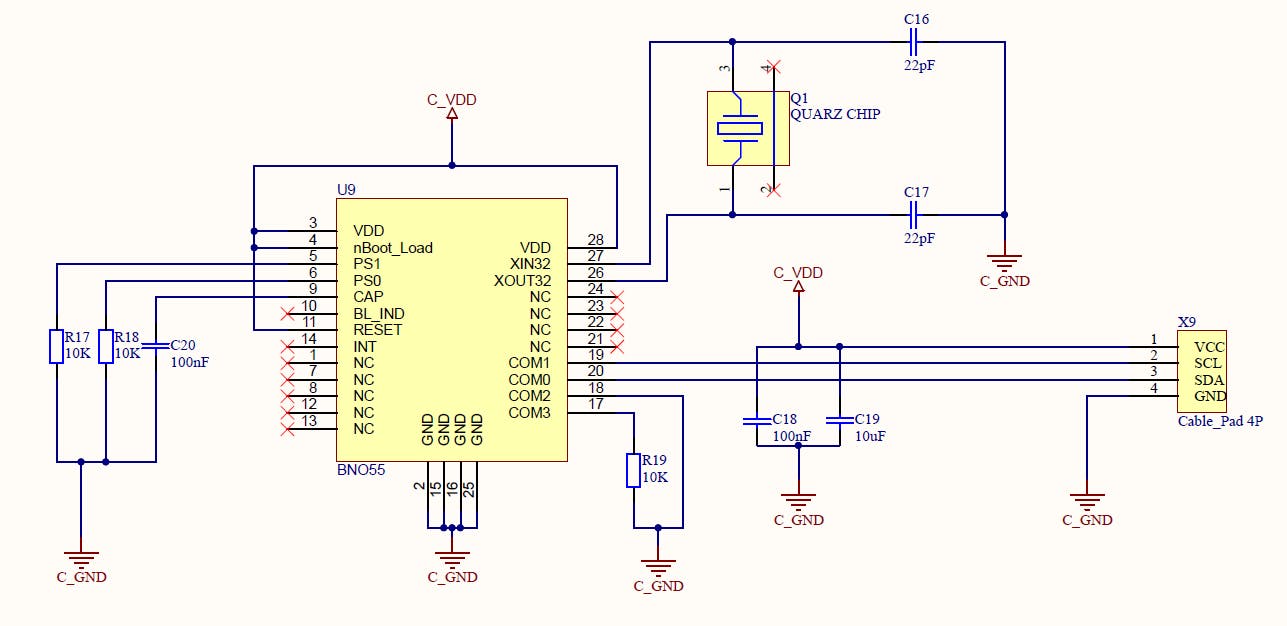 I recently developed a firmware for a gadget and I used a BNO055 breakout board from Adafruit during the development stage. The code works fine on this breakout board. Now I made my own pcb with the BNO055 on it and I am still abe to set the power mode and operation mode and read out the euler angles but when I change into the config mode, the BNO055 draws 70mA and obviously is getting warm... The reason why I switch into the config mode is beause I want to set the BNO055 in suspend mode which works fine on the breakout...
