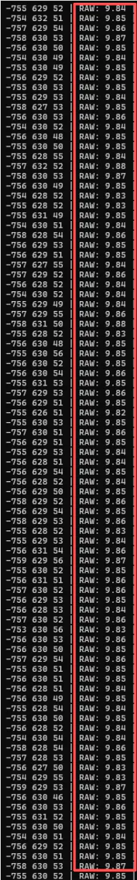 Sensor three-axis acceleration data I read from the buffer fluctuates a bit, using fusion mode. The test condition is to keep the machine still on the table, and the calibration status is full calibration.