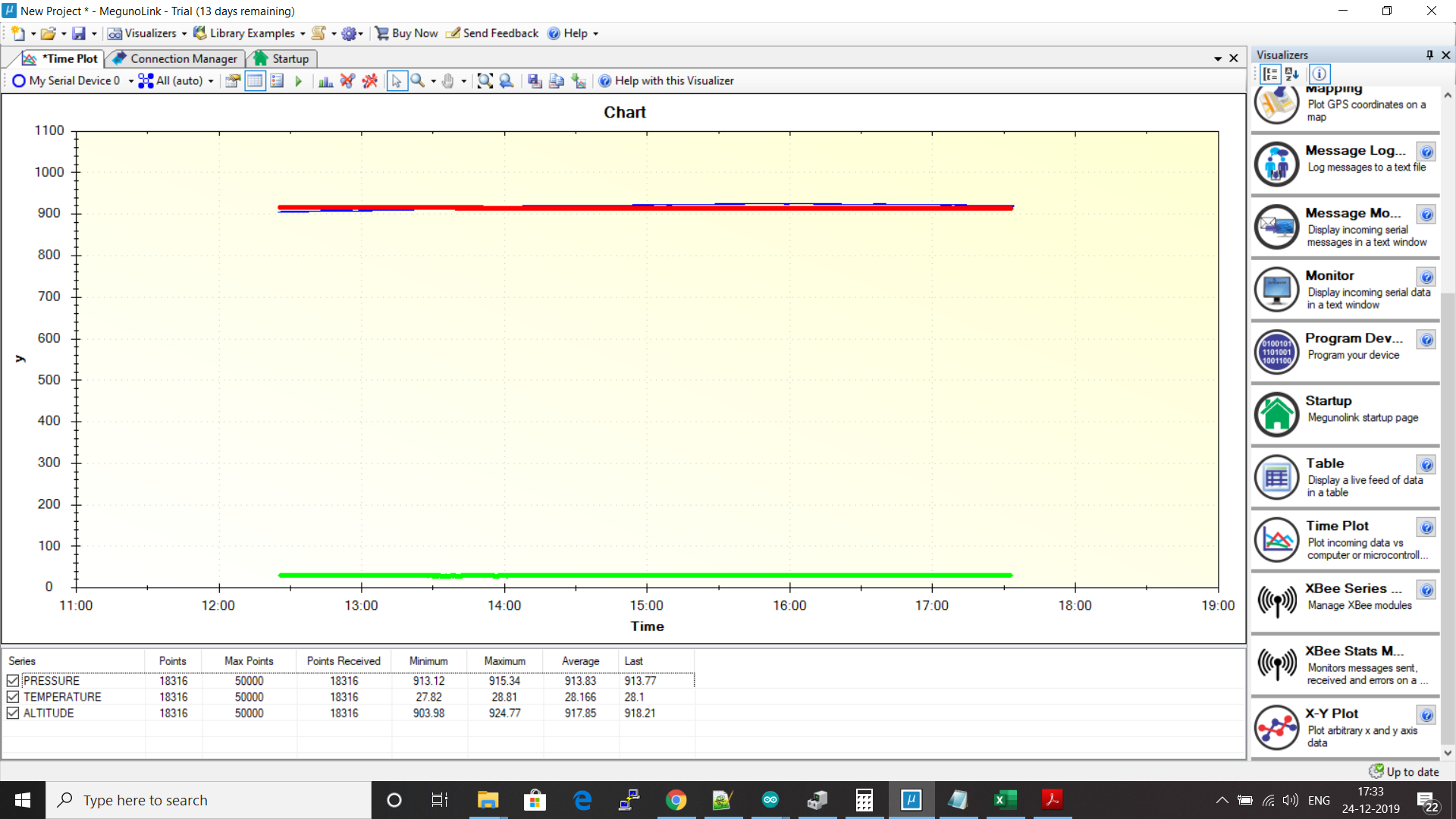 My application requires measuring the altitude with 0.5m to 1m accuracy. So, I am using the BMP280 sensor to calculate the altitude. The sensor is connected to the NODEMCU(ESP8266) and data read using the I2C interface in Arduino IDE. But while testing the altitude varies to 20m even though the sensor is kept at someplace over a period of time(around 6hrs). PFA for the code and image which shows the variation in altitude (MIN and MAX). Please suggest some solution in order to get the required functionality.
