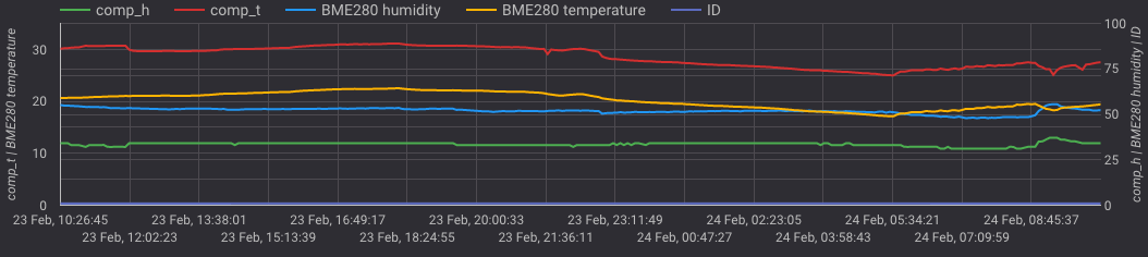Attached is a plot from 24h, demonstrating a comparison against a BME280.