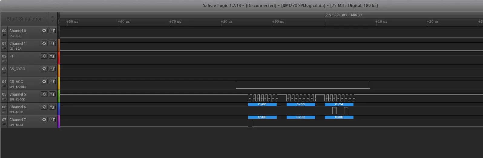 1. when I send 0x80 0xff 0xff, I can read MISO as 0xff 0x00 0x24. So 0x24 is chip_id, it is correct.